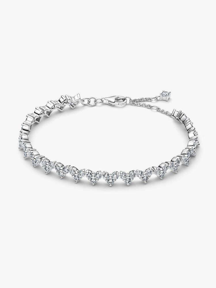 Kiedy kogoś kochasz, pozwól mu błyszczeć. Ta srebrna bransoletka jest ozdobiona trzema kamieniami w kształcie serc oraz dodatkowym kamieniem przy zapięciu. Idealny prezent, który pokaże, jak bardzo Ci zależy.