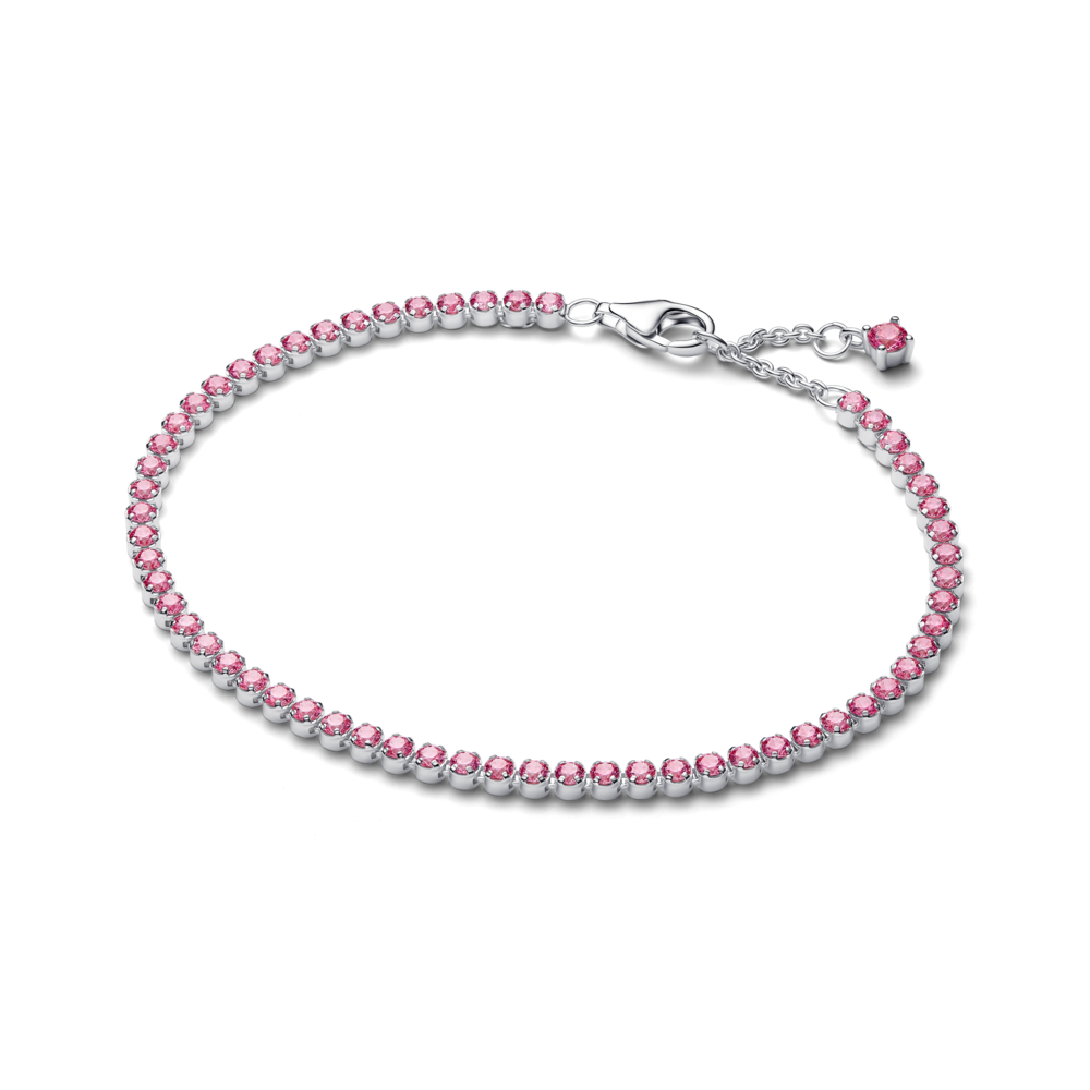 Wąska bransoletka tenisowa z różowymi kamieniami 593927C02-18