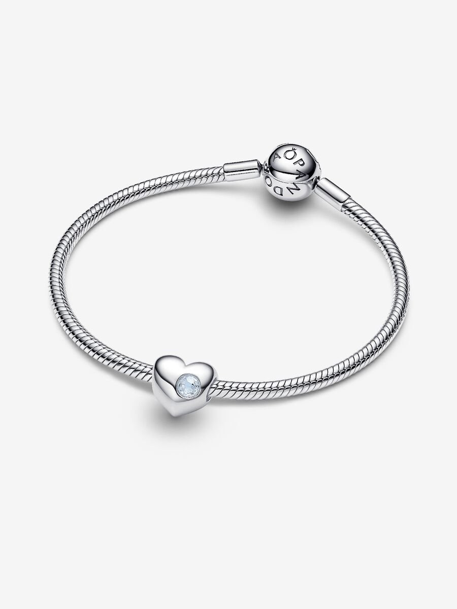 Wygraweruj przesłanie miłości. Nasz srebrny charms w kształcie serca z jasnoniebieskim kryształem syntetycznym w oprawie flush to idealne miejsce na osobistą afirmację lub symboliczne wspomnienie.
