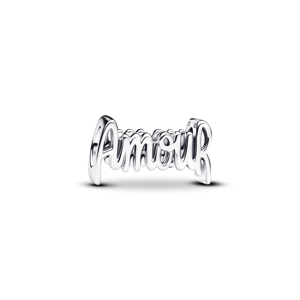Tak serdecznemu charmsowi nie sposób się oprzeć. Wykonany ze srebra element został ozdobiony odręcznie napisanym słowem „AmouR” w ażurowym wykończeniu, które jest odważnym wyrażeniem miłości, jaka nas łączy.