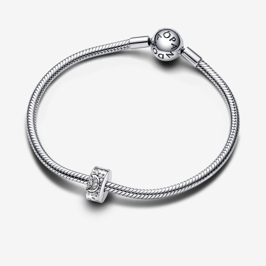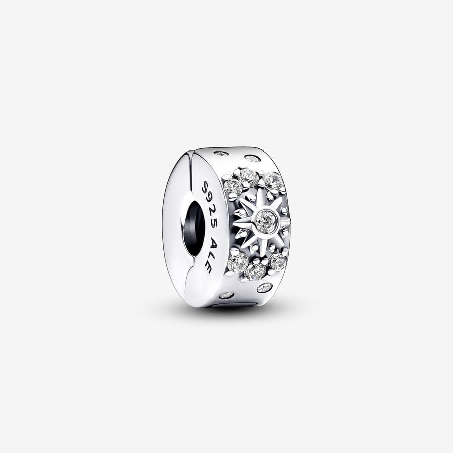 Jeśli lubisz wyrafinowane błyskotki, uzupełnij stylizację tym klipsem ze słońcem i półksiężycem. Srebrny charms został po jednej stronie ozdobiony wypukłym półksiężycem, a po drugiej wypukłym słońcem. Cała powierzchnia klipsa, łącznie ze słońcem i księżycem, jest wysadzana lśniącymi kamieniami. Silikonowy insert sprawia, że charms pozostanie w miejscu, które dla niego wybierzesz. Klips olśniewa pięknem nieba i będzie zjawiskową, ale subtelną ozdobą Twoich codziennych stylizacji.