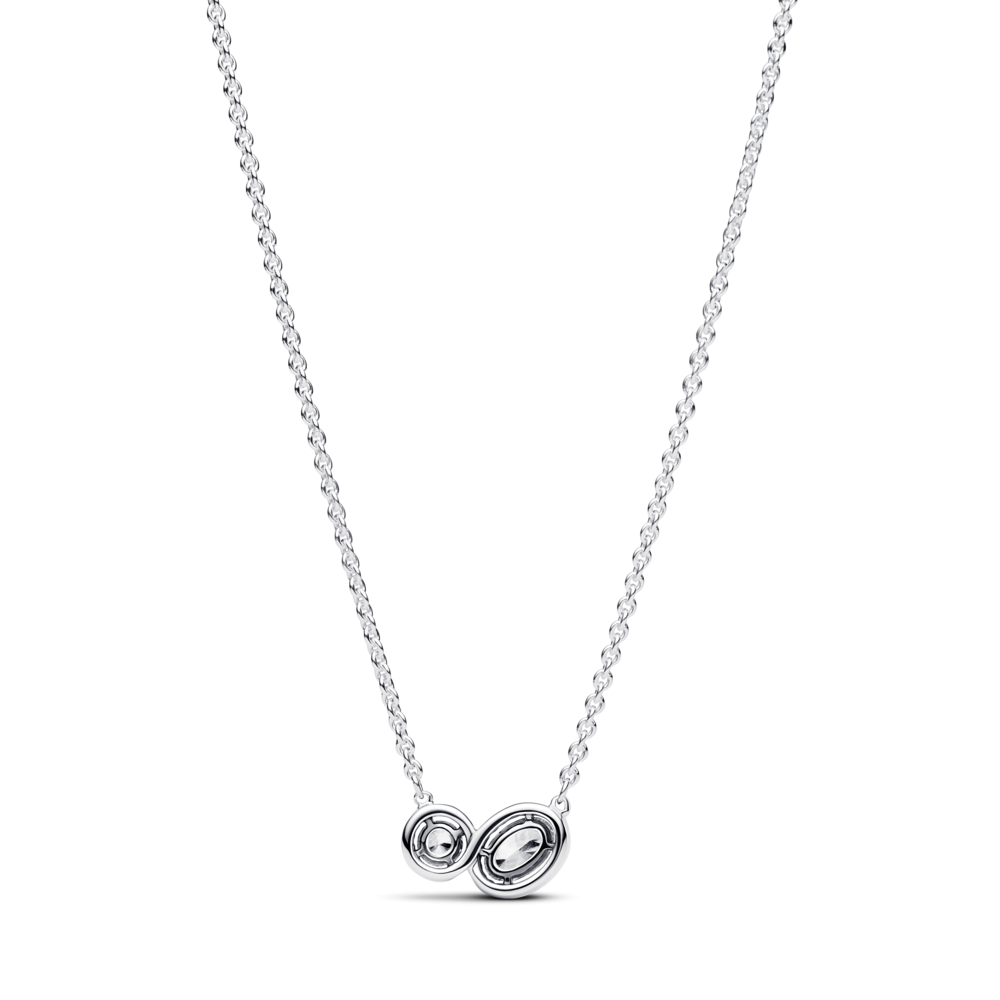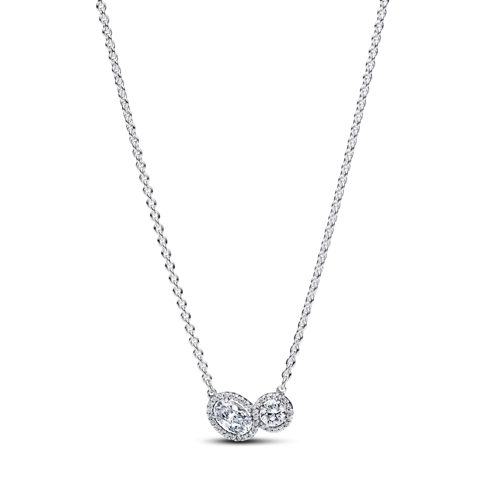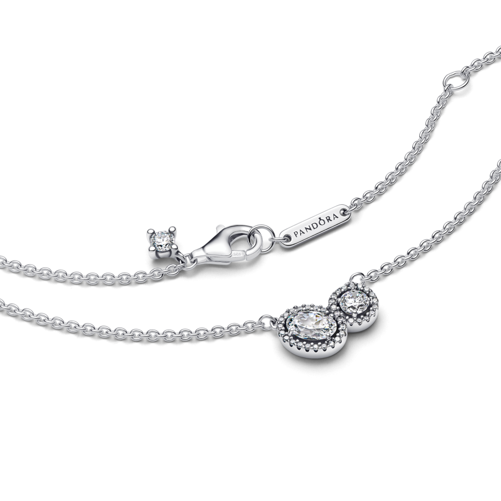 Opowiedz o sile dwojga naszyjnikiem z dwoma złączonymi kamieniami. Ten srebrny naszyjnik typu kolia został ozdobiony dwoma świetlistymi kamieniami – jednym okrągłym i jednym owalnym – połączonymi obwódką z kamieni pavé. Dodatkowy kamień kołysze się przy zapięciu. Łańcuszek można regulować do dwóch długości. Ten sugestywny i zarazem uniwersalny naszyjnik został zainspirowany bezcennym poczuciem więzi z najbliższymi, a także ideą dwóch bratnich dusz połączonych w jedną całość.