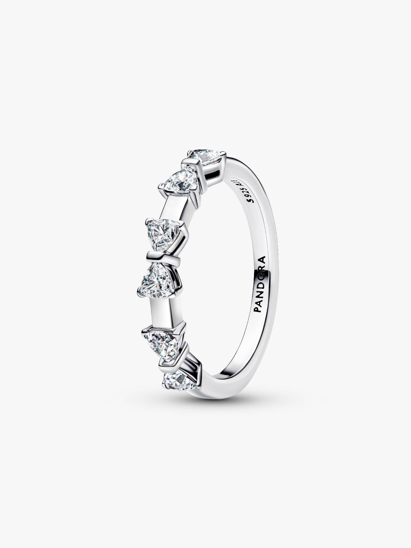 Owiń się blaskiem. Ten srebrny pierścionek został ozdobiony trzema kokardkami wysadzanymi lśniącymi kamieniami, które symbolizują staranie pielęgnowane więzi.